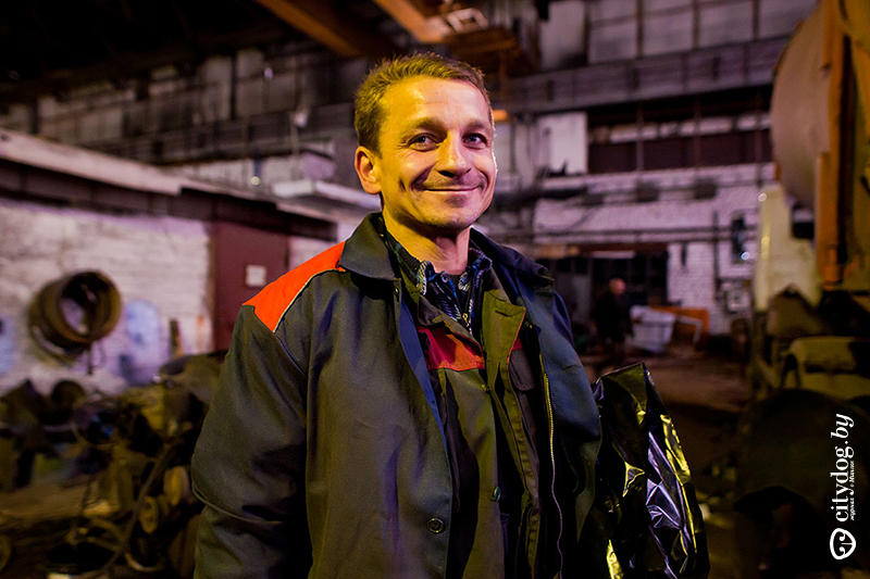 Ежедневно горожане выбрасывают тонны мусора: кто-то на газон, а кто-то в специальные контейнеры. Мы провели целый день с человеком, который помогает поддерживать город в чистоте и порядке. Рабочий день Андрея Сачука длится с 8 утра до 8 вечера. За это время водитель мусоровоза успевает проехать 140-180 км по городу и выгрузить мусор из 140 контейнеров. Обычно рабочий день Андрея начинается в 8 утра, иногда – раньше. Чтобы проехать все точки и собрать мусор из всех контейнеров, водители могут стартовать с базы и в 6 часов, так можно успеть многое сделать до пробок. Но Андрей с утра занят ремонтом своей машины. «Если машина ломается, то это простой, он оплачивается ниже, чем обычное рабочее время. Зато если помогаешь с ремонтом, получаешь 10% премии. Поэтому, конечно, все равно приезжаешь и делаешь, что можешь. На выезд мы поедем или на моем МАЗе, если его доделают, или на ЗИЛе – его как раз заканчивают ремонтировать». Мы ждем, пока починят машину, но до полудня закончить с МАЗом так и не успевают, поэтому выезжаем на ЗИЛе постарше. Сегодня Андрей не будет выступать в привычной роли водителя – он будет показывать маршрут и помогать водителю ЗИЛа, своему тезке. «Работаешь всегда на одной машине, с напарником. Три дня ты, три дня – напарник. Конечно, люди украшают кабины, как хотят, например, компакт-дисками. Могут ли они радар отражать? Так это нам не грозит: крейсерская скорость 60 км/ч, больше все равно не разгонишься». «Перед выездом все водители получают список точек и маршрут, проходят доктора обязательно. Маршруты повторяются: у меня один в понедельник-среду-пятницу и другой во вторник и четверг. Раньше всегда ездили вдвоем: водитель и грузчик. Теперь водитель один. Хотя на некоторые маршруты отправляют двоих: во дворах, например, невозможно подъехать к контейнерам, грузчик помогает их выкатывать. Потому что, если сам будешь выкатывать, так и весь рабочий день пройдет». Первая точка – магазин на ул. Скрипникова. Контейнеры стоят очень близко, их приходится растаскивать вручную. Дальше просто: зацепить контейнер подъемником, высыпать мусор в цистерну, внутри поровнять «ворошителем» и сжать прессом. Все управление – с помощью ручек, которые расположены снаружи машины. «Весь маршрут отслеживается по GPS: куда едешь, где какие остановки делаешь. При разгрузке машина взвешивается, чтобы точно узнать, полная или нет. Загрузка – 4-5 тонн. Мусор, конечно, весь спрессовывается, уже нигде нет машин, в которые он просто засыпается. За день я обычно проезжаю маршрут дважды: из Колядич в сторону Ждановичей, на Северную свалку и потом обратно. Всего мне нужно проехать 97 точек, это 140 контейнеров. Как раз их за день и успеваешь собрать. Чтобы пораньше закончить – такого не бывает». «Очень сложно, конечно, работать во дворах. Нужно протискиваться, искать какие-то проезды. Нельзя ведь, по правилам, стоять на той стороне, где дома. Но всем на это наплевать. Мы обычно стараемся объезжать машины, иногда выйдешь, стукнешь ногой по колесу, сирена завоет, прибегает хозяин: «Что вы мне тут по колесу стучите?» Спасибо бы сказал, что ГАИ не вызываем. ГАИ, кстати, действительно можно вызвать, минут за 15 приезжают, подцепляют и эвакуируют». Целый день – задние дворы, мусорки и узкие подъездные дорожки. Андрей периодически выскакивает из машины, громким свистом сигнализирует напарнику,